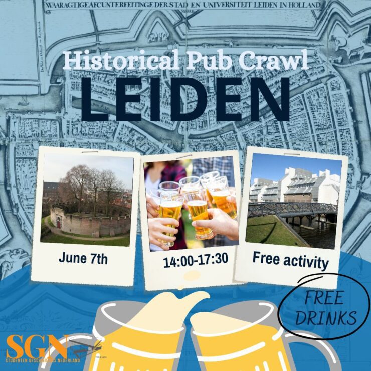 Yess, op 7 juni is de lang verwachte extra SGN-dag in Leiden! Om 14:00 zijn jullie allemaal van harte welkom bij café Barrera om vervolgens een enerverende historische kroegentocht door het centrum van Leiden te volgen. De activiteit is helemaal gratis, maar vergeet niet de forms in te vullen om te laten weten dat je komt!
